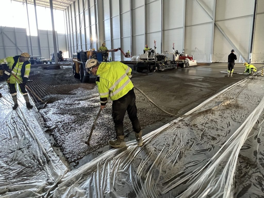 Linotol har fått i uppdrag av A Bygg Entreprenör A/S att utföra 46000m2 betonggolv vid IKEAs nya lager i Vestby i Norge. Lagret har en mycket hög automationsgrad och det ställer höga krav på golvet med avseende på deformation, lastkapacitet och planhet. Linotol projekterar och levererar en kombinationsarmerad lösning med både nätarmering och stålfiber. ”Vi är nu igång med att gjuta höglagerdelen där plattan är upp till 450mm tjock. Då gjuter vi över 400m3 per dag. Det ställer höga krav på både yrkesarbetare och utrustning” säger Linotols projektledare Anton Gustafsson. Linotols arbeten startade i april och kommer att avslutas under Q3 2023.