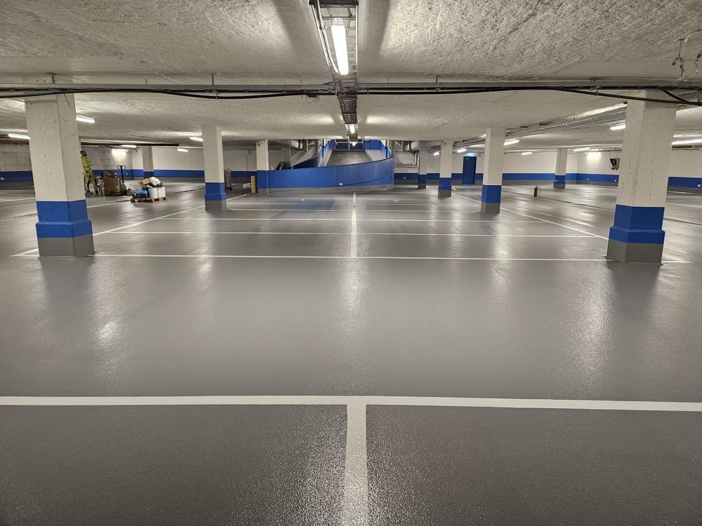 I parkeringshus används ofta MaxiResin-golv, eftersom härdplasten skyddar golvytorna från salt och vatten som annars kan tränga in och förstöra betongen. Beläggningen skyddar även mot slitage och underlättar renhållningen i garaget.