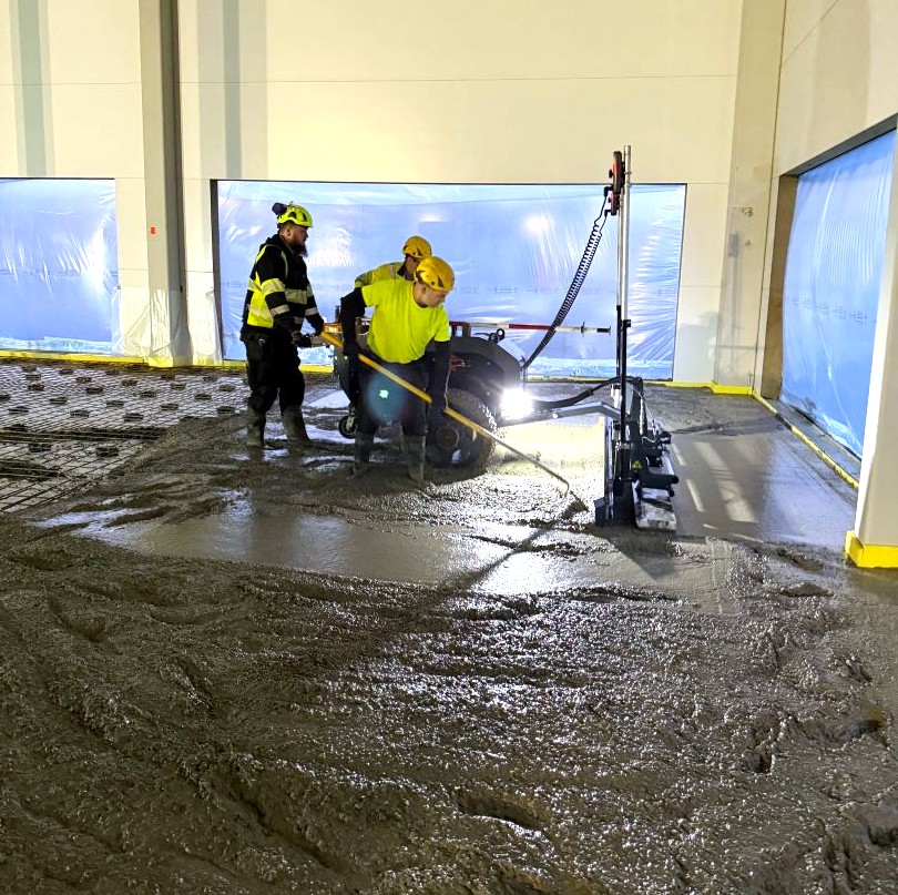 Vi gjöt golvet till kontor och tankfarm i samarbete med Holmqvist Entreprenad AB innan årsskiftet och färdigställer nu de större ytorna för lager och tillverkning med Linotol ABs större maskingjutningsmetod. CM Betong AB levererar golvoptimerad miljöbetong nivå 3 till projektet.
